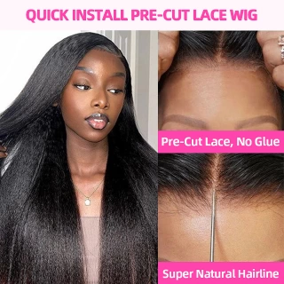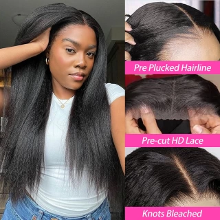 250% Kinky Straight Glueless Wig Ready To Wear And Go 13x6 Hd Yaki Straight Lace Front Human Hair Wigs For Women 30 36 Inch