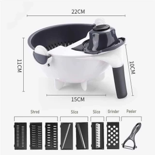 đĨ All-in-One Kitchen Helper: Features 7 interchangeable stainless steel blades and a rotating drain basket. Slice, shred, grate, and wash all in one versatile toolâno more messy countertops.