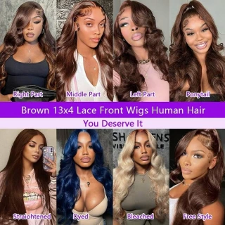 Chocolate Brown Body Wave Human Hair Wigs 13X4 HD Lace Frontal Wigs For Women Colored Brazilian Wet And Wavy Lace Front Wigs
