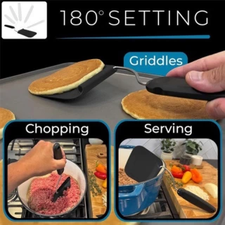 Slide the FlipServe™ Spatula under your food and feel the heavy-duty, heat-resistant grip perfectly balance in your hand. The moment you squeeze the ergonomic handle, the brilliant dual-sided tong mechanism clamps down, smoothly and securely trapping your delicate fish, pancakes, or steaks in a flawless grip. You aren't just cooking; you are effortlessly flipping, turning, and serving with absolute, mess-free confidence, making every single meal look like a professional culinary masterpiece.