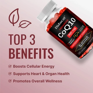 2.Cellular Energy: C0q10 elevates your daily vigor! Our coenzyme q10 supplement enhances cellular energy production, making you more active, fresh, and lively throughout your days, as Q10 coenzyme helps you live a vibrant, almost youthful life.