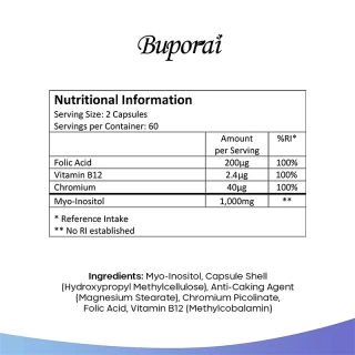 Ingredients: Folic acid, vitamin B12, chromium, inositol