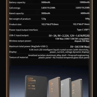 Product size: 5000mAh(102.5*66.0*9.0mm) / 10000mAh(102.5*66.0*14mm)