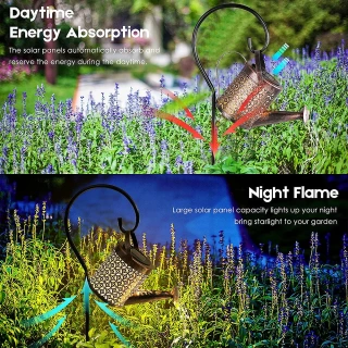 Add a touch of whimsy and sophistication to your outdoor decor with the Solar Watering Can Light. Whether hung on a shepherd's hook or placed atop a table, it serves as both an eye-catching ornament during the day and a mesmerizing light source at night.