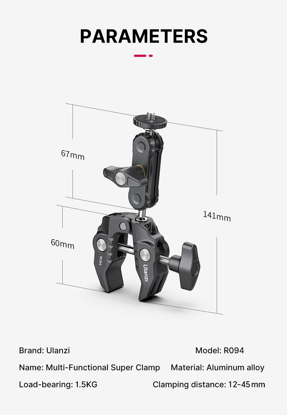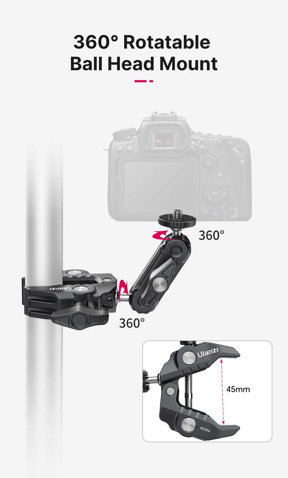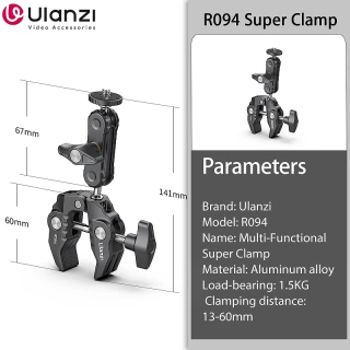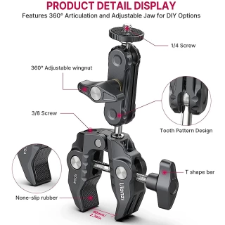 Ulanzi R094 Metal Super Clamp with Double Ball Head Magic Arm 1/4'' 3/8'' Screw Hole for Mount Camera Monitor LED Light Mic